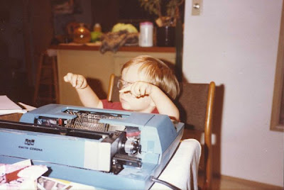 This weekend I helped my dad to clean up an article on his campaign to sail for the USA in the 1976 Olympics. My mom helped, too. In going through some old pictures, she found this picture of me, conjuring some of my earliest prose.